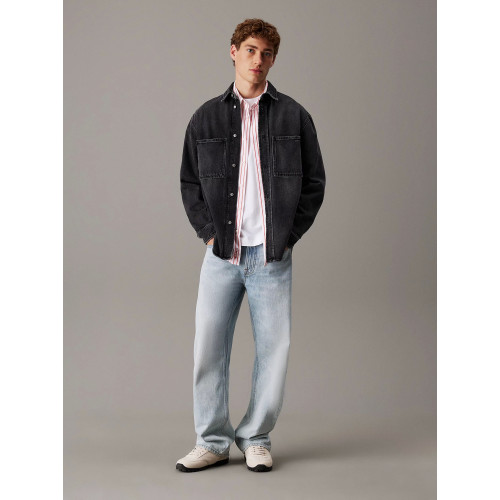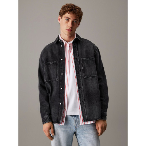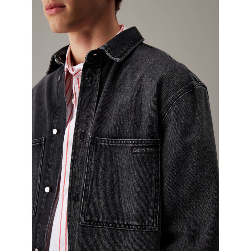 Мужская джинсовая рубашка Calvin Klein из плотного хлопка, прямого кроя, два нагрудных кармана, длинный рукав, застегивается на болтах
