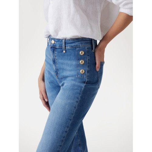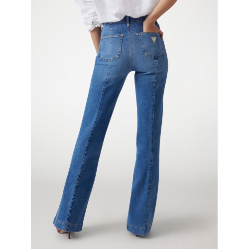 Женские джинсы Guess, модель- FAYE PANT, высокая посадка, полуоблегающие по бедрам, слегка расклешенные от колена, застежка на молнию