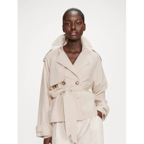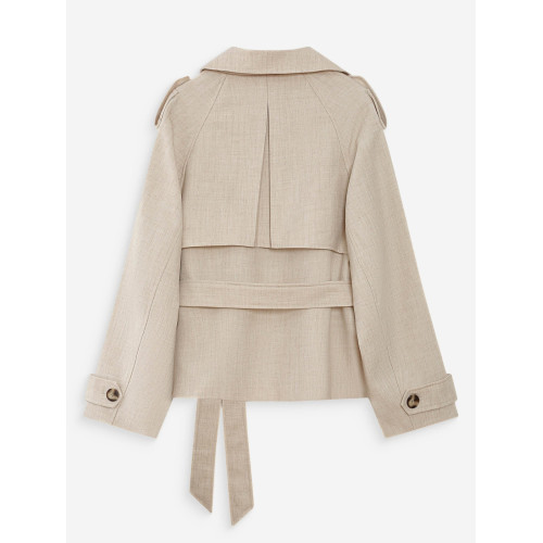 Женский летний укороченный плащ Grace&Mila, прямого кроя, широкий отложной воротник, боковые врезные карманы, съемный пояс, застегивается на пуговицы