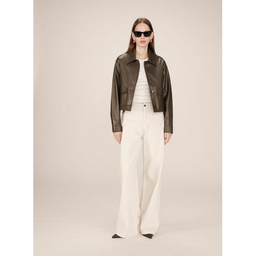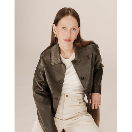 Женская куртка Grace&Mila из ЭКО кожи, прямого свободного кроя, отложной воротник, два боковых накладных кармана, застежка на пуговицы