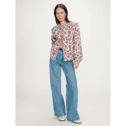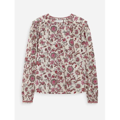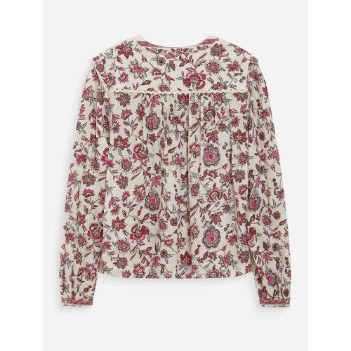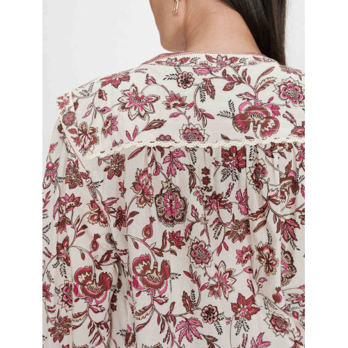 Женская блуза Grace&Mila, прямого свободного кроя, цветочный принт с отделкой из ажурной тесьмы, круглый вырез горловины, длинный рукав, застежка на пуговицы