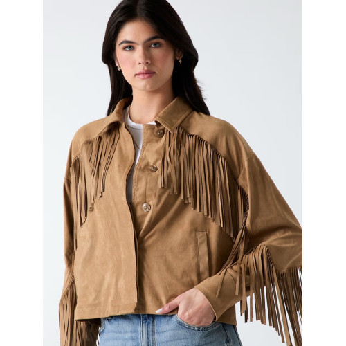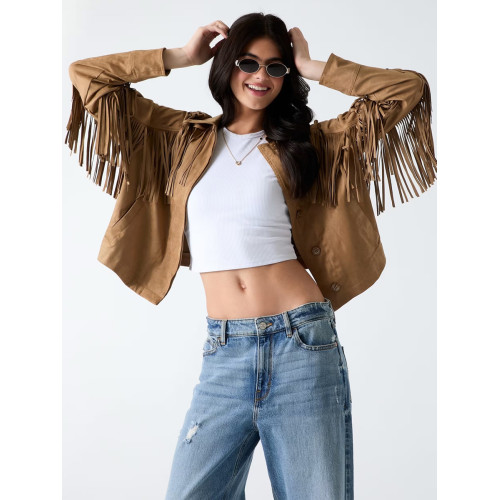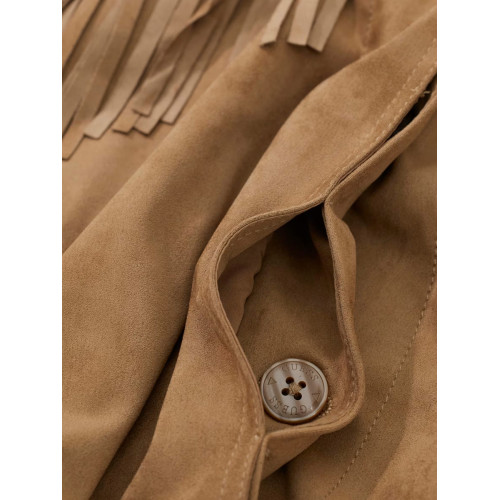 Отделка бахромой в тон куртки, ткань по замшу.
