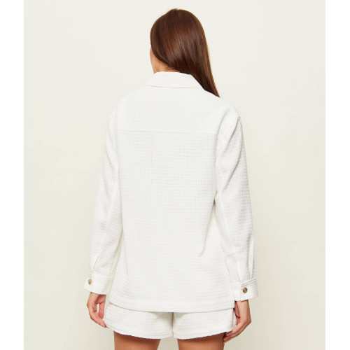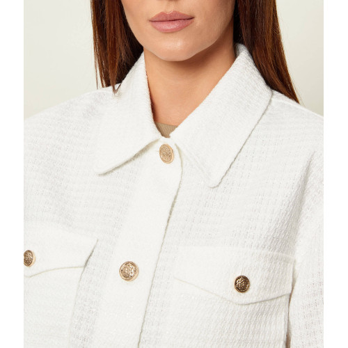 Легкая женская куртка-пиджак Guess, свободного кроя, отложной воротник, длинный рукав, два кармана на груди, застежка на пуговицы