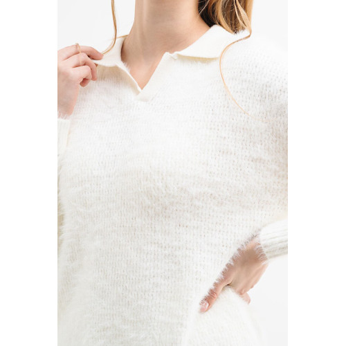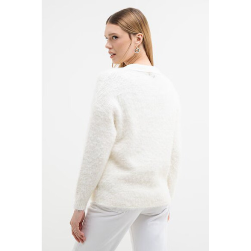 Вязанный женский джемпер Guess, прямого кроя, отложной воротник V-образный вырез, длинный рукав