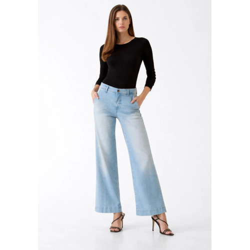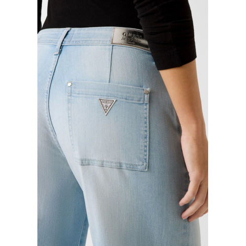 Женские джинсы Guess, модель-Wide Leg, джинсового кроя, средняя посадка, прямые свободные по всей длине штанины, застежка на молнию