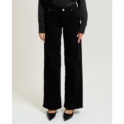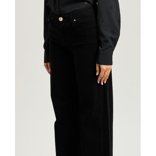 Женские брюки Guess, модель-Wide Leg, джинсового кроя, средняя посадка, прямые свободные по всей длине штанины, застежка на молнию