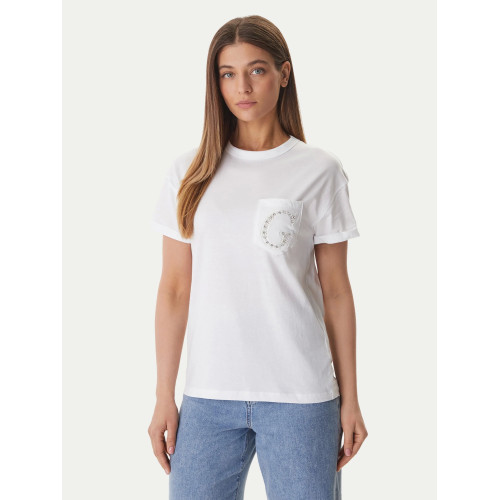 Женская футболка Guess с небольшим кармашком на груди, прямого кроя, круглый вырез горловины, короткий рукав
