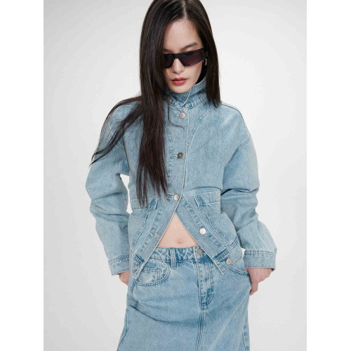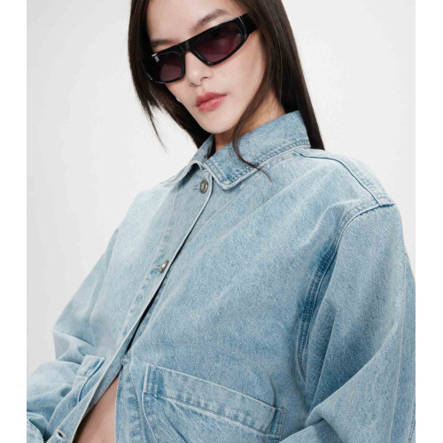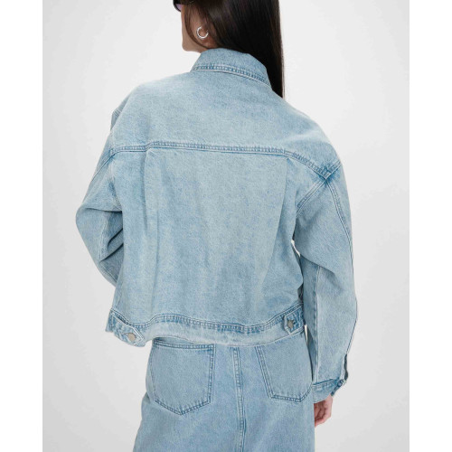 Женская джинсовая куртка Grace&Mila, свободного кроя - OVERSIZE, отложной воротник, два широких накладных боковых кармана, застежка на болтах