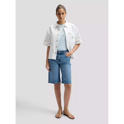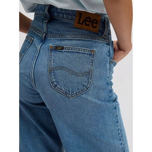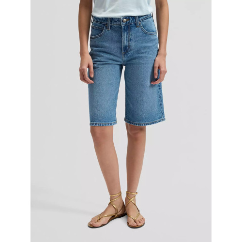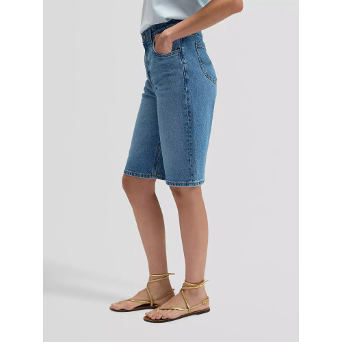 Джинсовые женские шорты Lee, высокая посадка, прямые свободные штанины, длина чуть выше колена, застежка на молнию