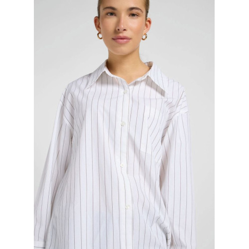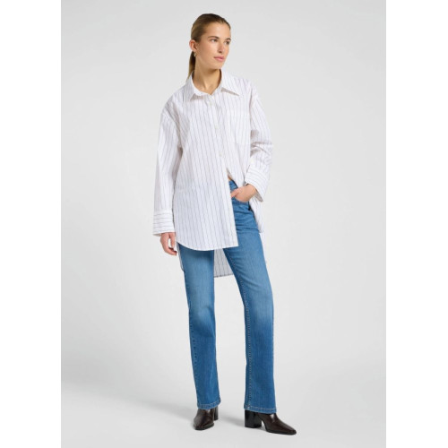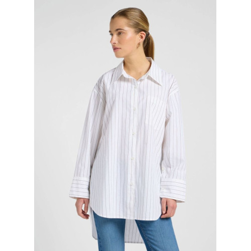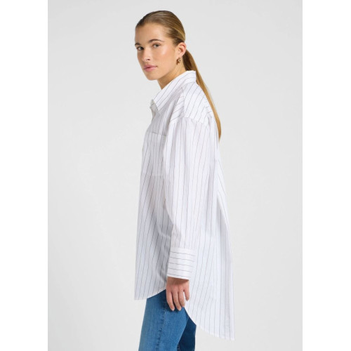 Женская рубашка Lee в полоску, удлиненная, свободного кроя, отложной воротник, один нагрудный карман, длинный широкий рукав, застежка на пуговицах