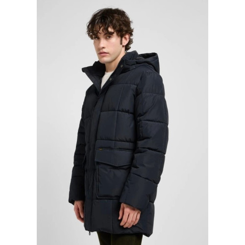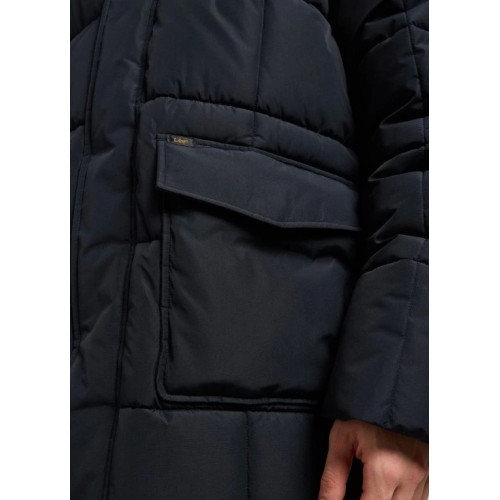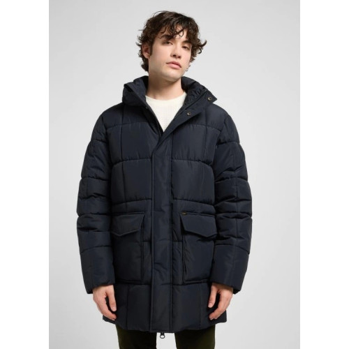 Демисезонная стеганная мужская куртка Lee, прямого кроя, воротник-стойка с неотстегивающимся капюшоном, два боковых кармана, застежка на молнию и кнопки.