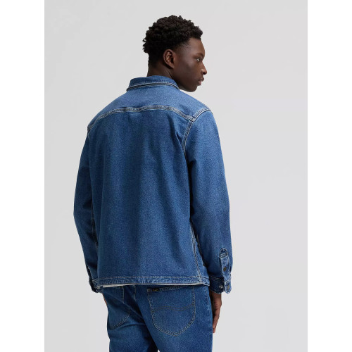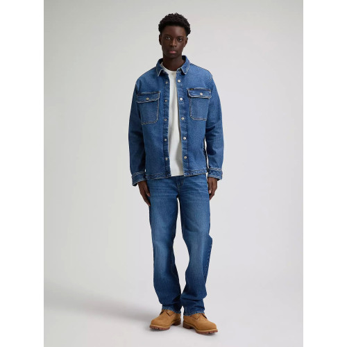Мужская джинсовая рубашка-куртка Lee, прямого кроя, с двумя широкими нагрудными карманами и два- боковых, длинный рукав, застежка на болтах