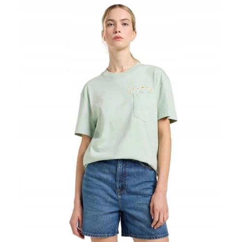 Женская футболка Lee с небольшим кармашком на груди, прямого свободного кроя, круглый вырез горловины, короткий рукав