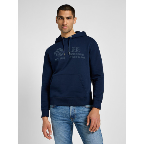 Мужская толстовка Lee с логотипом, прямого кроя, капюшон на завязках, длинный рукав, карман-кенгуру