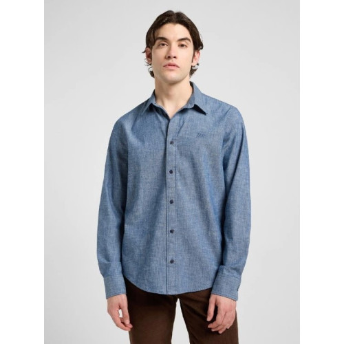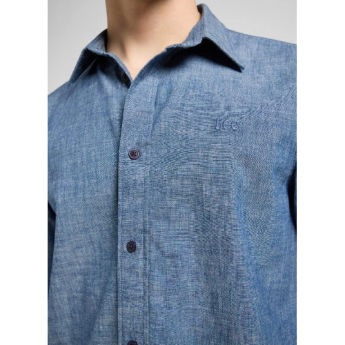 Мужская рубашка Lee с небольшим логотипом в тон, прямого кроя, длинный рукав, застежка на пуговицы