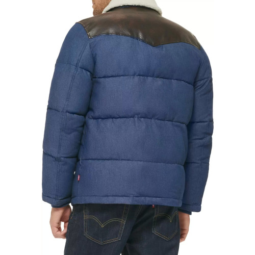 Мужская демисезонная стеганная куртка Levi's®, прямого кроя, отложной воротник, два боковых кармана, застежка на молнию и кнопки.