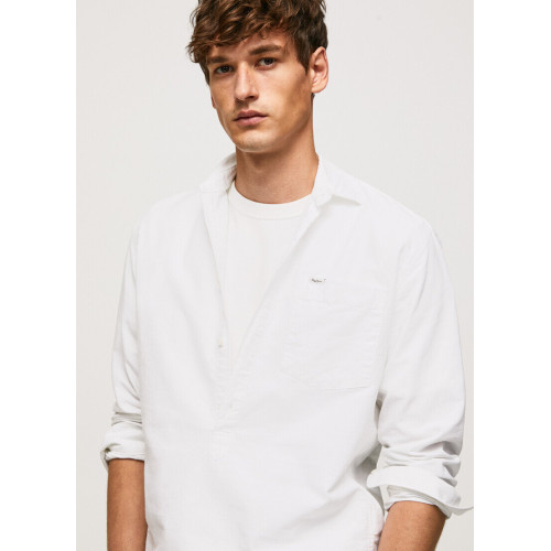 Мужская летняя рубашка Pepe Jeans, прямого кроя, отложной воротник-лацкан, короткий рукав, без нагрудных карманов, застежка на пуговицы.