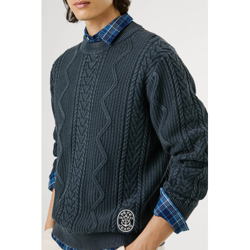 Вязанный мужской джемпер Pepe Jeans (крупная вязка), прямого кроя, круглый вырез горловины, длинный рукав