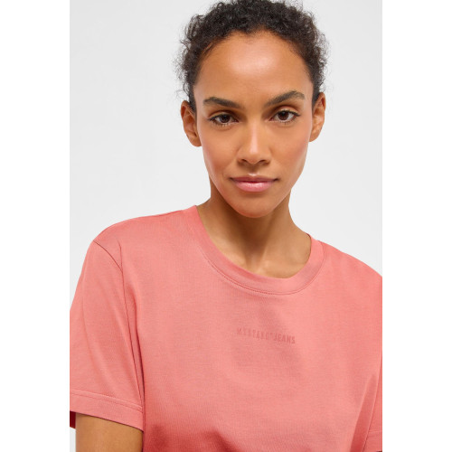 Женская футболка Mustang с логотипом в тон, свободного прямого кроя, круглый вырез горловины, короткий рукав