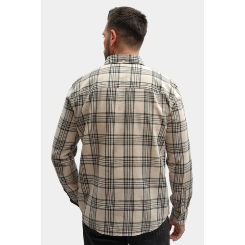 Льняная мужская рубашка Mustang в клетку, прямого кроя, отложной воротник,длинный рукав, застежка на пуговицах