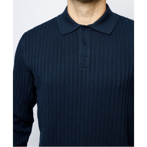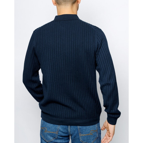 Вязанный мужской джемпер-поло Pierre Cardin, прямого кроя, отложной воротник планка на пуговицах, длинный рукав