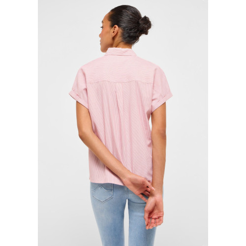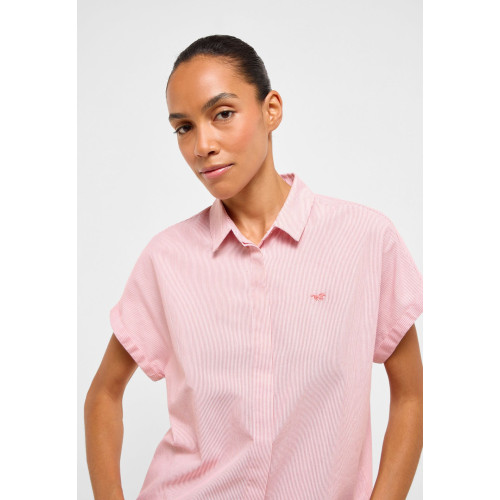 Рубашка женская Mustang в полоску, прямого кроя, короткий рукав "кимоно", отложной воротник, застегивается на пуговицы