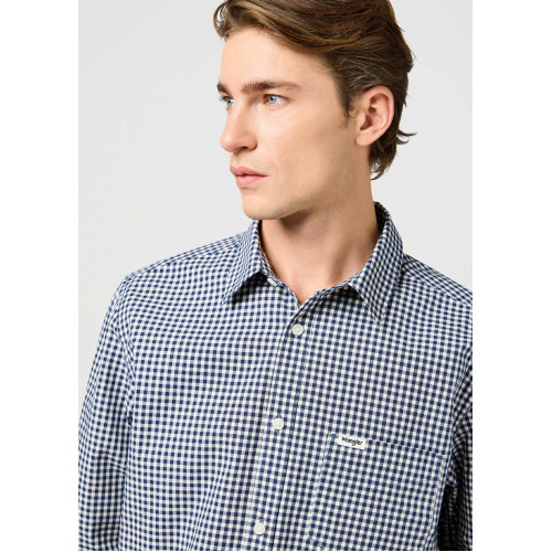 Клетчатая мужская рубашка Wrangler, прямого кроя, с одним нагрудным карманом, длинный рукав, застежка на пуговицах