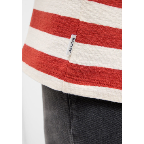 Женская футболка Mustang в полоску, свободного кроя, круглый вырез горловины, длинный рукав