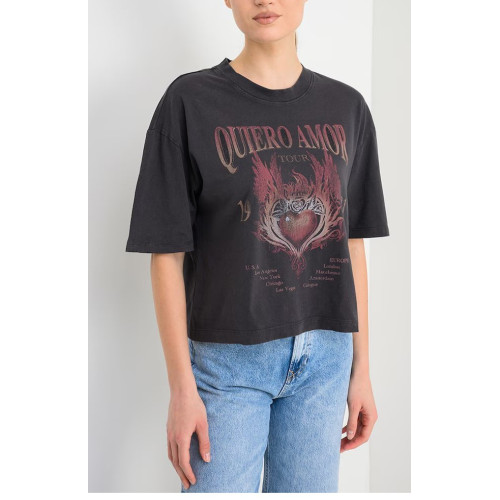 Женская футболка Guess с принтом, свободного кроя, круглый вырез горловины, короткий рукав