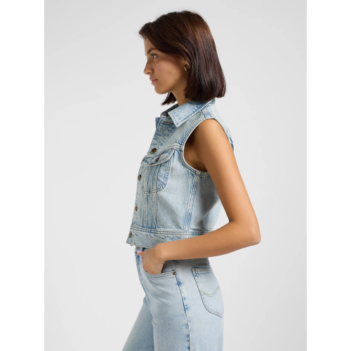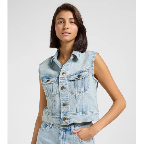 Женский джинсовый жилет Lee, прямого кроя , два нагрудных кармана, застежка на болтах