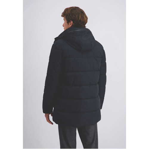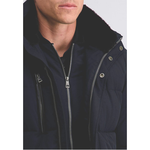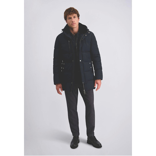 Мужская зимняя стеганная куртка Pierre Cardin со съемной внутренней планкой, прямого кроя, воротник -стойка с отстегивающимся капюшоном(отделка ворота из искусственного меха), два боковых кармана и один нагрудный, длинный рукав, застежка на молнию и кнопки