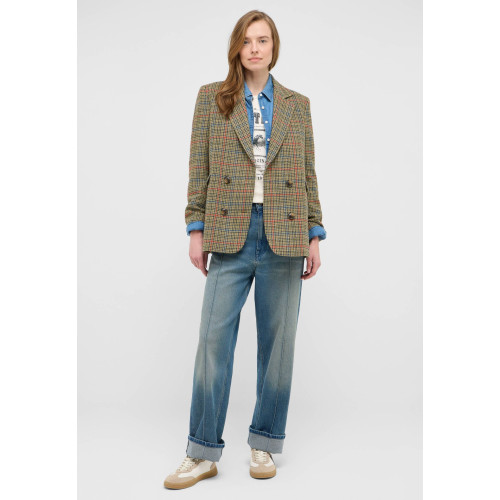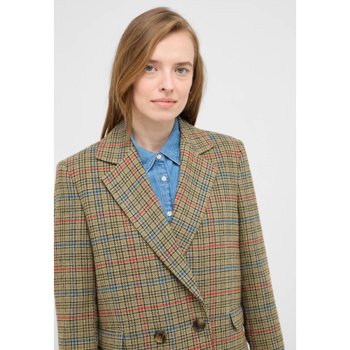 Двубортное женский пиджак Mustang с подкладкой, прямого кроя, отложной воротник-лацкан, два боковых кармана, длинный рукав, застежка на пуговицах