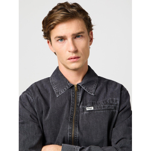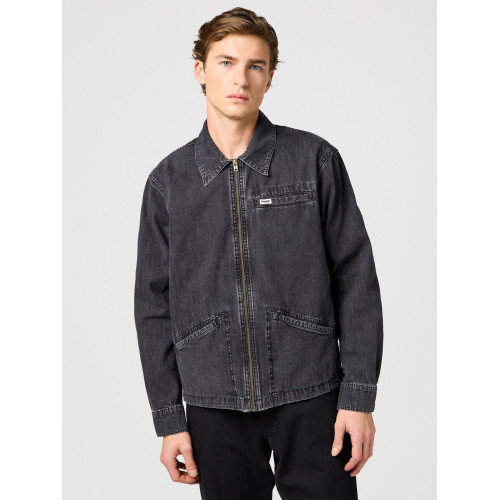Джинсовая мужская куртка-ветровка Wrangler, прямого кроя, отложной воротник, один нагрудный и два боковых кармана, застегивается на молнию
