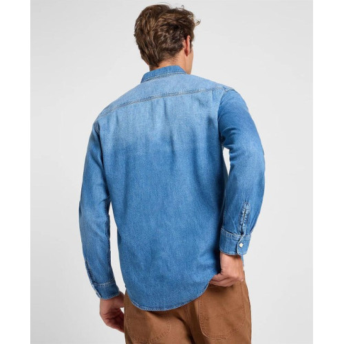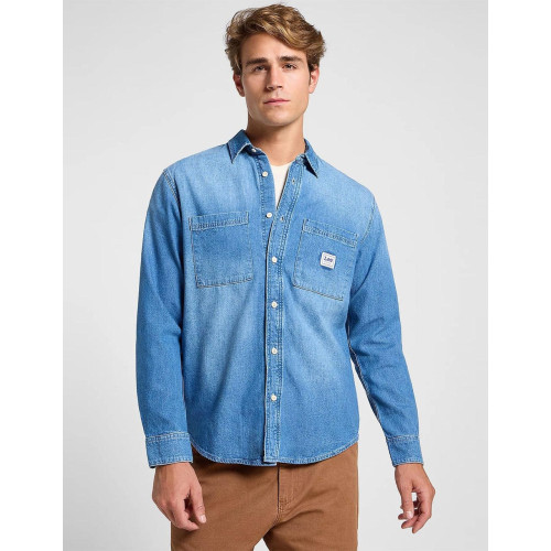 Мужская классическая джинсовая рубашка Lee, прямого кроя, с двумя большими нагрудными карманами, длинный рукав, застежка на пуговицах