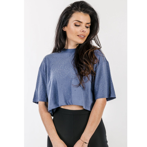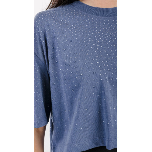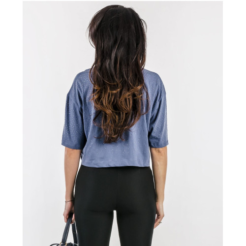 Женская футболка Guess (отделка ткани- стразами), свободного кроя, круглый вырез горловины, короткий рукав