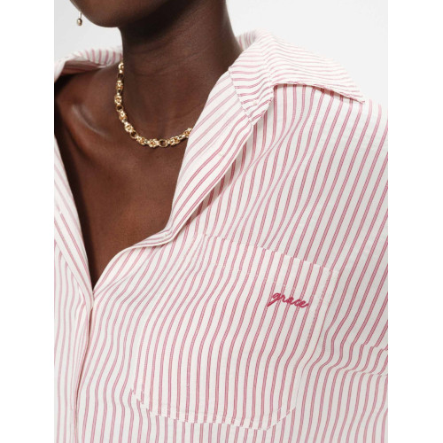 Женская рубашка Grace&Mila, прямого свободного кроя, удлиненный силуэт, длинный рукав, классический отложной воротник, нагрудный карман, застежка на пуговицы