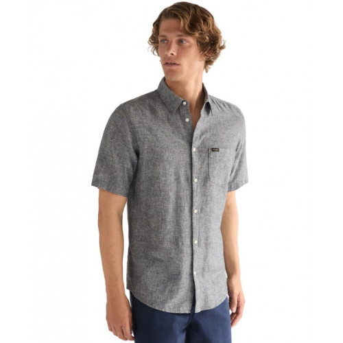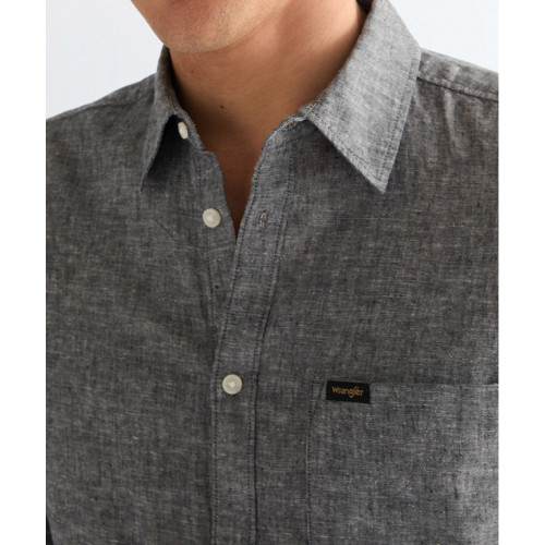 Льняная мужская рубашка Wrangler, прямого кроя, с одним нагрудным карманом, короткий рукав, застежка на пуговицах