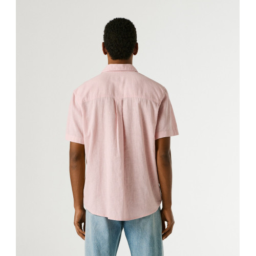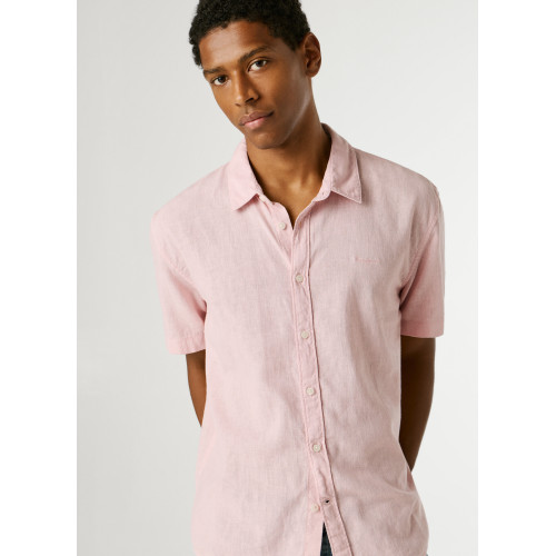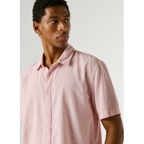Мужская льняная рубашка Pepe Jeans, прямого кроя, отложной воротник, короткий рукав, без нагрудных карманов, застежка на пуговицы.