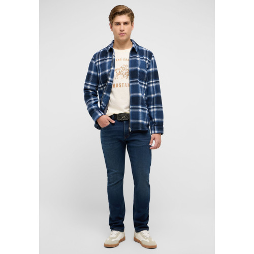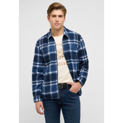 Трикотажный мужская куртка Mustang в клетку, рубашечного кроя, отложной воротник, длинный рукав, застежка на молнию