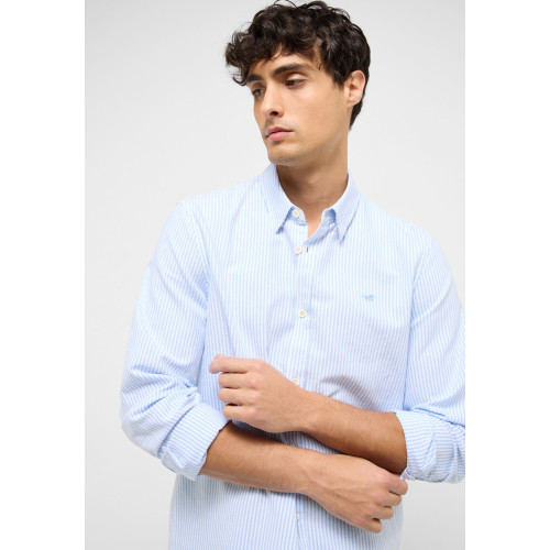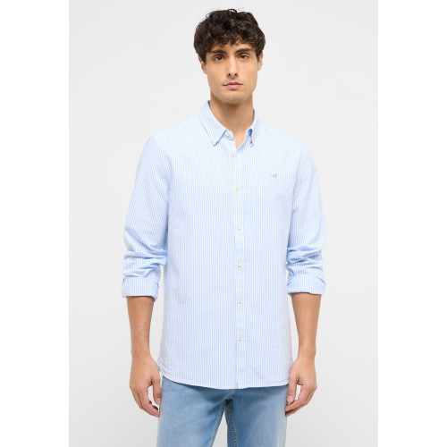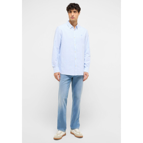 Летняя мужская рубашка Mustang , прямого кроя, отложной воротник, длинный рукав, застежка на пуговицах