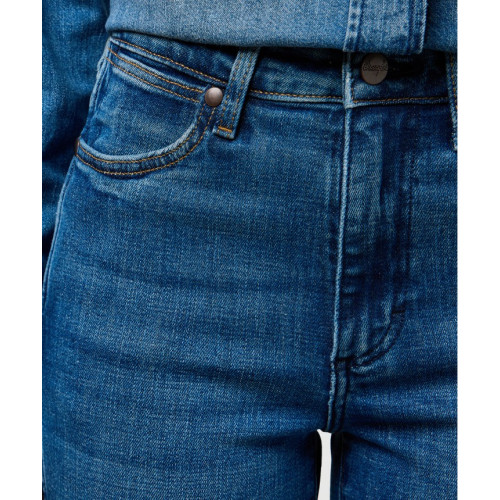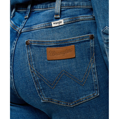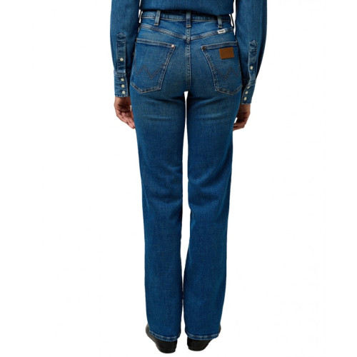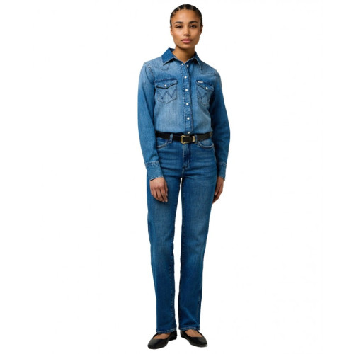 Классические женские джинсы Wrangler. Модель W26R (Straight ) – высокая комфортная посадка, полуоблегающие по бедрам, прямые штанины от колена, застежка на молнию.