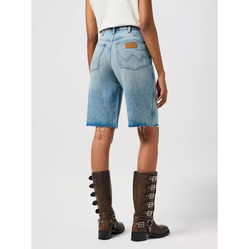 Джинсовые женские шорты Wrangler, модель Relaxed, средне-высокая посадка, прямые штанины до колена, застежка на молнию.