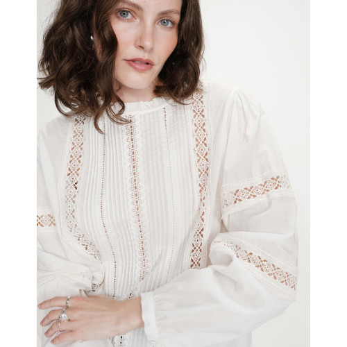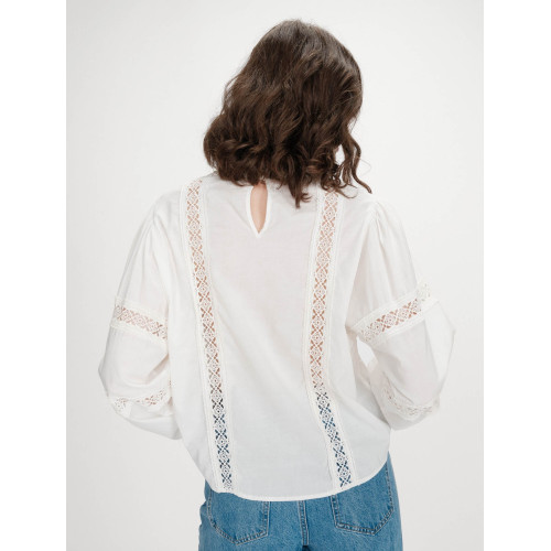 Ажурная женская рубашка Grace&Mila , прямого кроя,воротник-стойка, укороченный объемный рукав, застежка сзади на пуговицах.