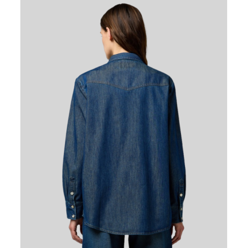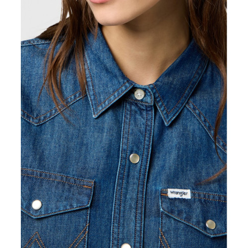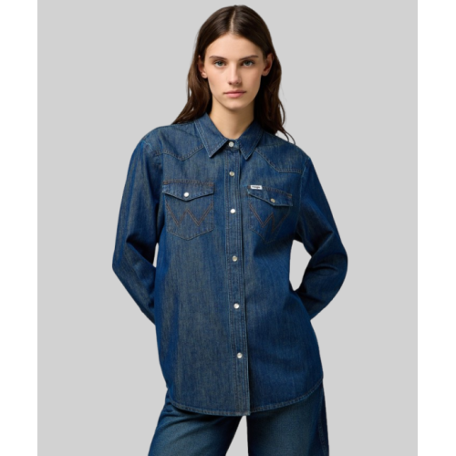 Женская джинсовая рубашка Wrangler из средней плотности хлопка, прямого кроя, два нагрудных кармана, отложной воротник, длинный рукав, застежка на кнопки.