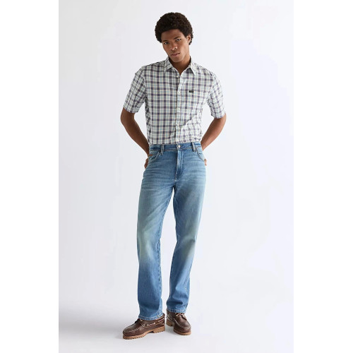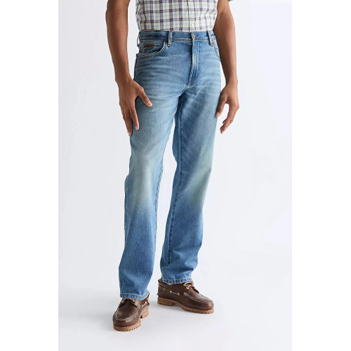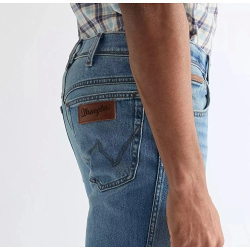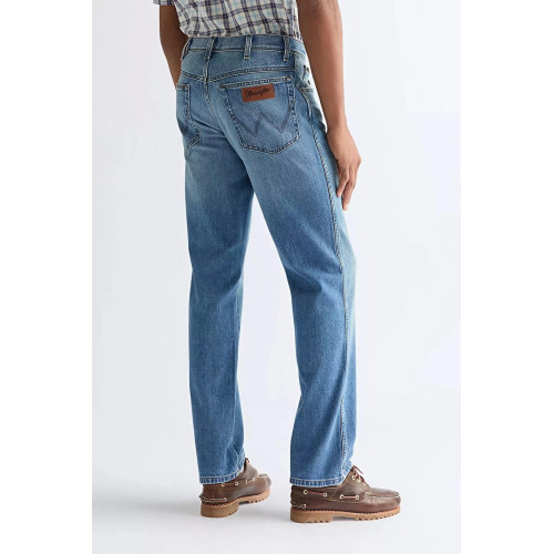 Мужские классические джинсы Wrangler, модель TEXAS - средняя, ближе к высокой, посадка, свободные по бедрам, прямые по всей длине штанины, застежка на молнию.