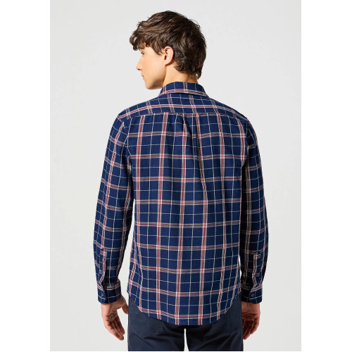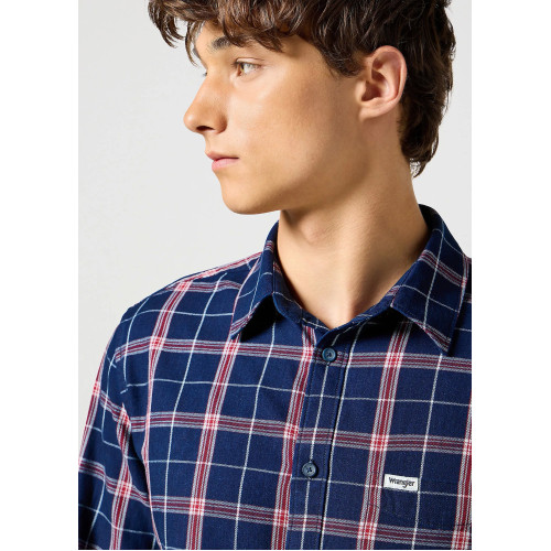 Клетчатая мужская рубашка Wrangler, прямого кроя, с одним нагрудным карманом, длинный рукав, застежка на пуговицах