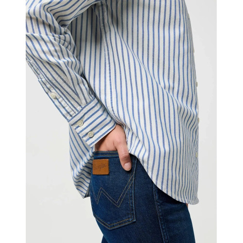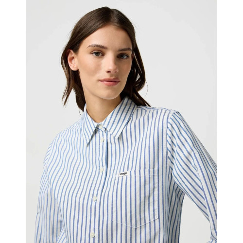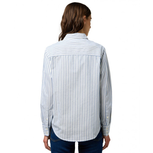 Блуза в полоску Wrangler, свободного кроя, один нагрудный карман с небольшим логотипом, отложной воротник, длинный рукав, застежка на пуговицы