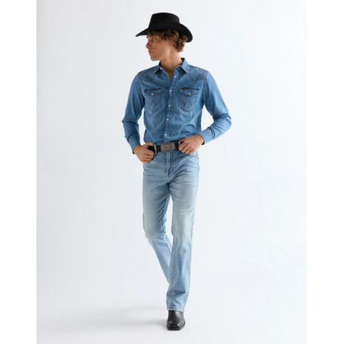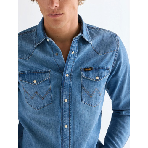 Мужская классическая джинсовая рубашка Wrangler, прямого кроя, два нагрудных кармана, длинный рукав, застегивается на кнопки