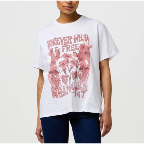 Женская футболка Wrangler с принтом, прямого свободного кроя, круглый вырез горловины, короткий рукав